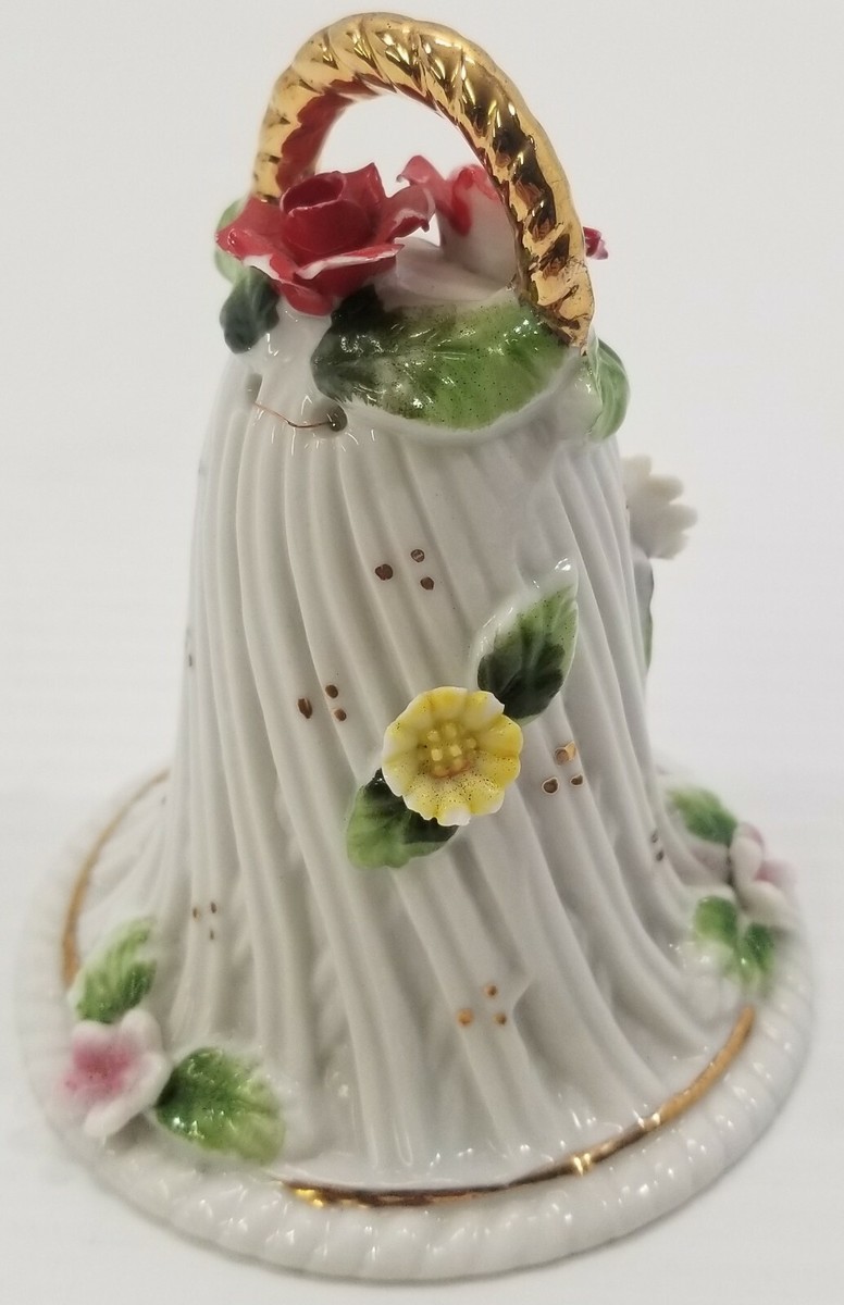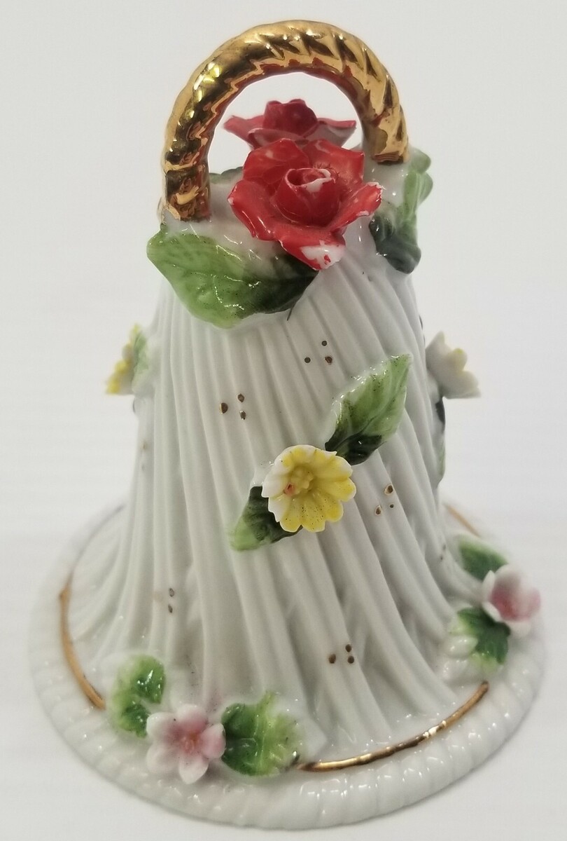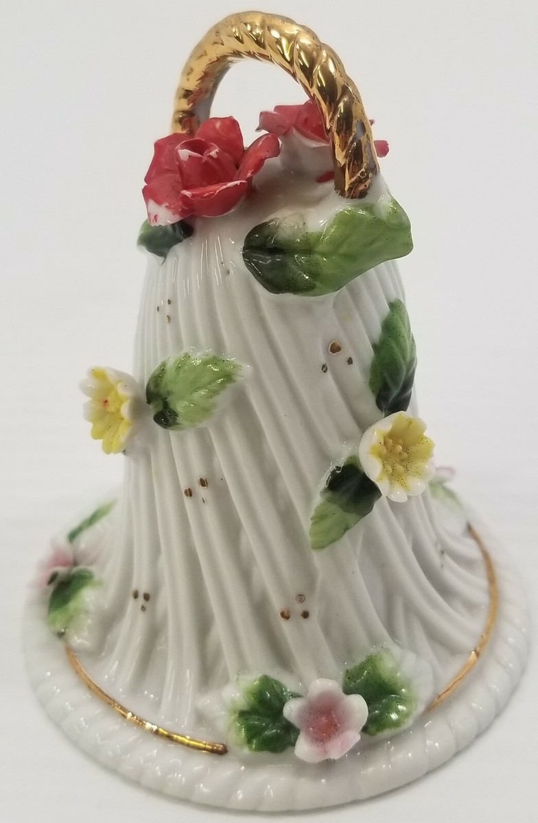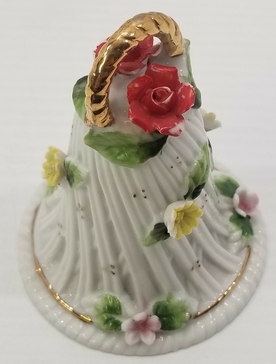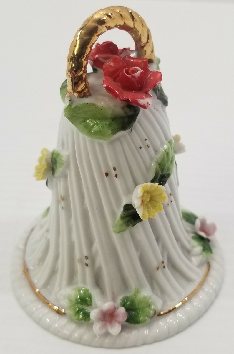 VC) Vintage Christmas Spring Floral Porcelain Dinner Bell Ornament 4"
