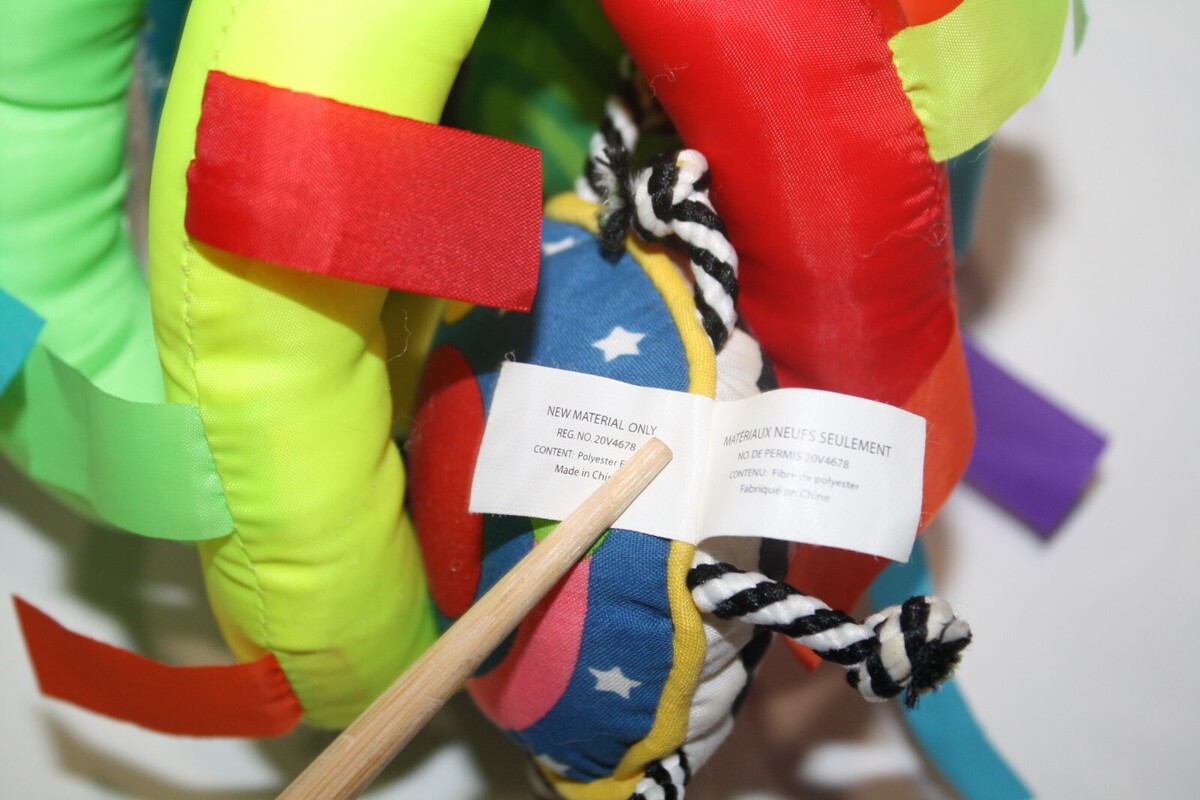 Pull Whoozit face for vibrating, Ribbon tags, Silky nylon in multicolors, Squeaker on end