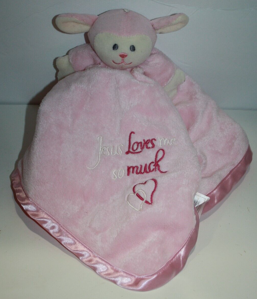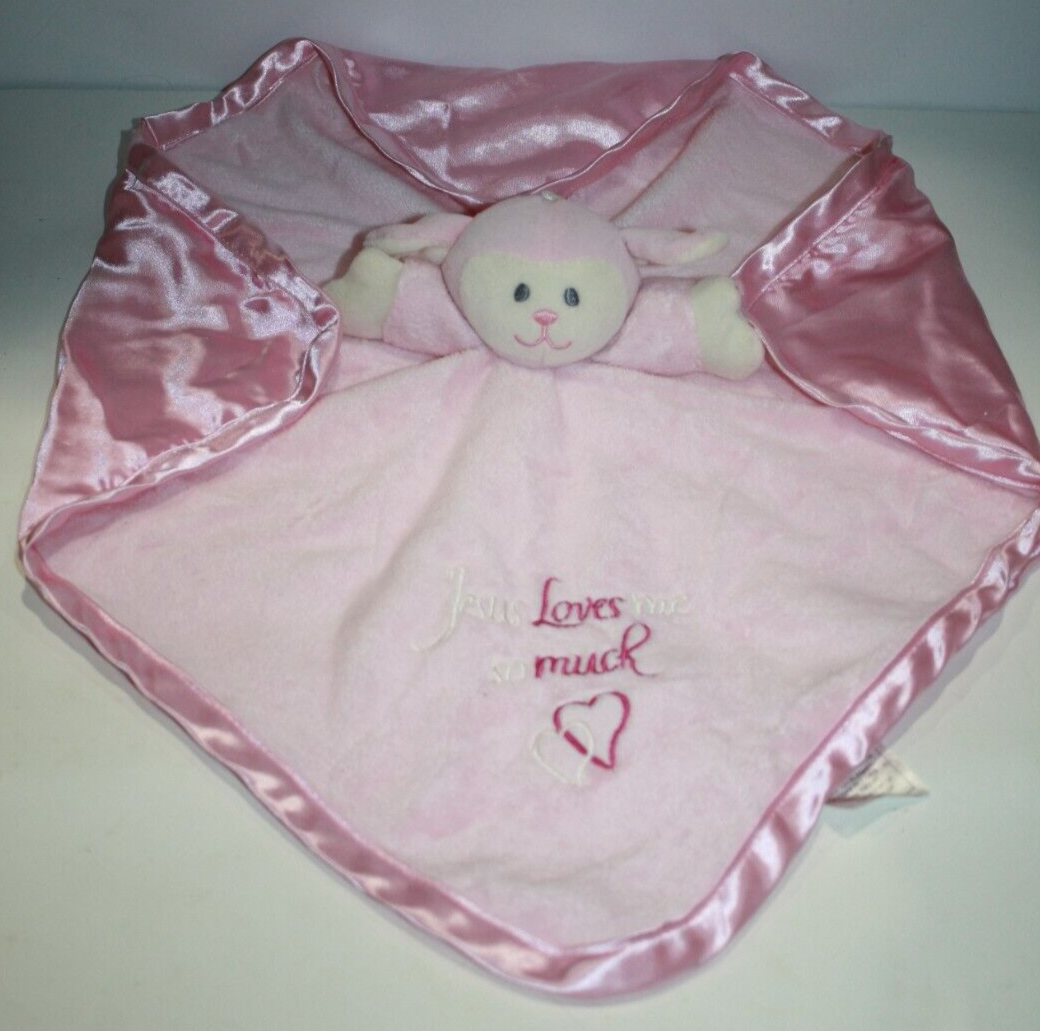 Family Christian Pink Jesus Loves Me So Much Lamb Baby Girl Security Blanket 17"