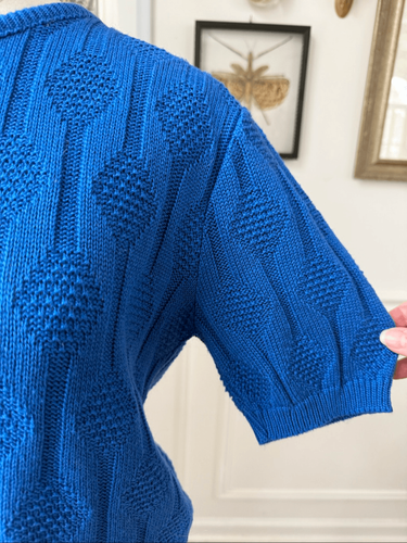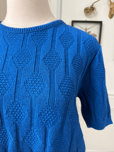 Vintage 70s Cobalt Blue Cobalt Blue Textured Short Sleeve Knit Sweater S