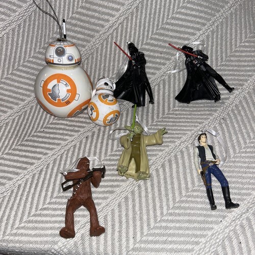 Hallmark Star Wars Ornament Character Lot BB-8, Darth Vader, Han Solo, Yoda M1. Condition is Used. Shipped with USPS Ground Advantage.