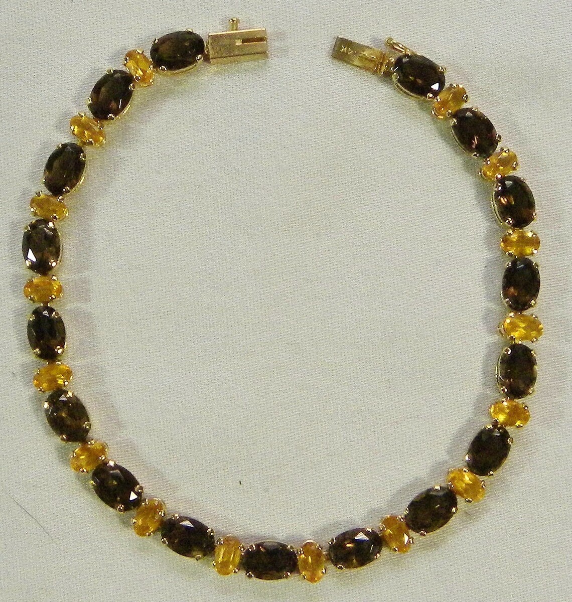 Oval Smokey Quartz-Citrine Tennis Bracelet (21-CTW) Set in 14k Gold-Vintage