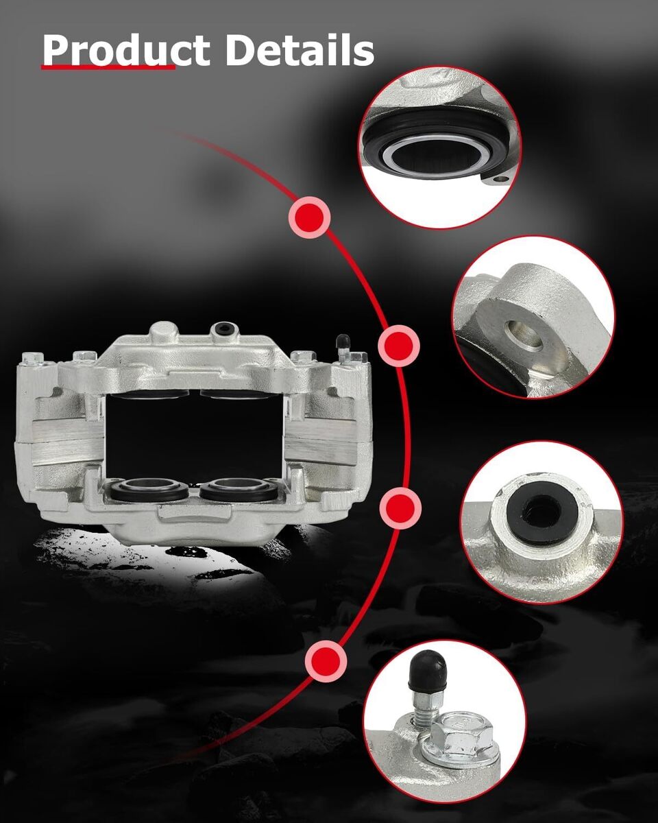 FITS: For Toyota For 4Runner 4.0L 2003 2004 2005,For Toyota For 4Runner 4.7L 2003 2004 2005,For Toyota For Sequoia 4.7L 2001 2002 2003 2004 2005 2006 2007,For Toyota For Tundra 3.4L 2000 2001 2002 2003 2004,For Toyota For Tundra 4.0L 2005 2006,For Toyota For Tundra 4.7L 2000 2001 2002 2003 2004 2005 2006 BRAKE CALIPER SPECIFICATION: Bleeder port size:M7 x 1.0;Inlet port size:M10 x 1.0;Piston diameter:1.773inch;Piston Count:4 Pistons;Piston Material:Iron;Without Bracket REFERENCE NUMBER: 192713 192712(Front Driver Passenger Side) ADVANTAGE: Adopt advanced technology, with the characteristics of high strength to ensure the stability of caliper brake power output. Built to Strict Quality Control Standards,All Brake Calipers meet or exceed OEM specifications. PERFECT MATCHER(For BUYER): Before Purchase,Check the Amazon Fitment System and the MAKE/MODEL/TRIM in the description in the upper left corner.