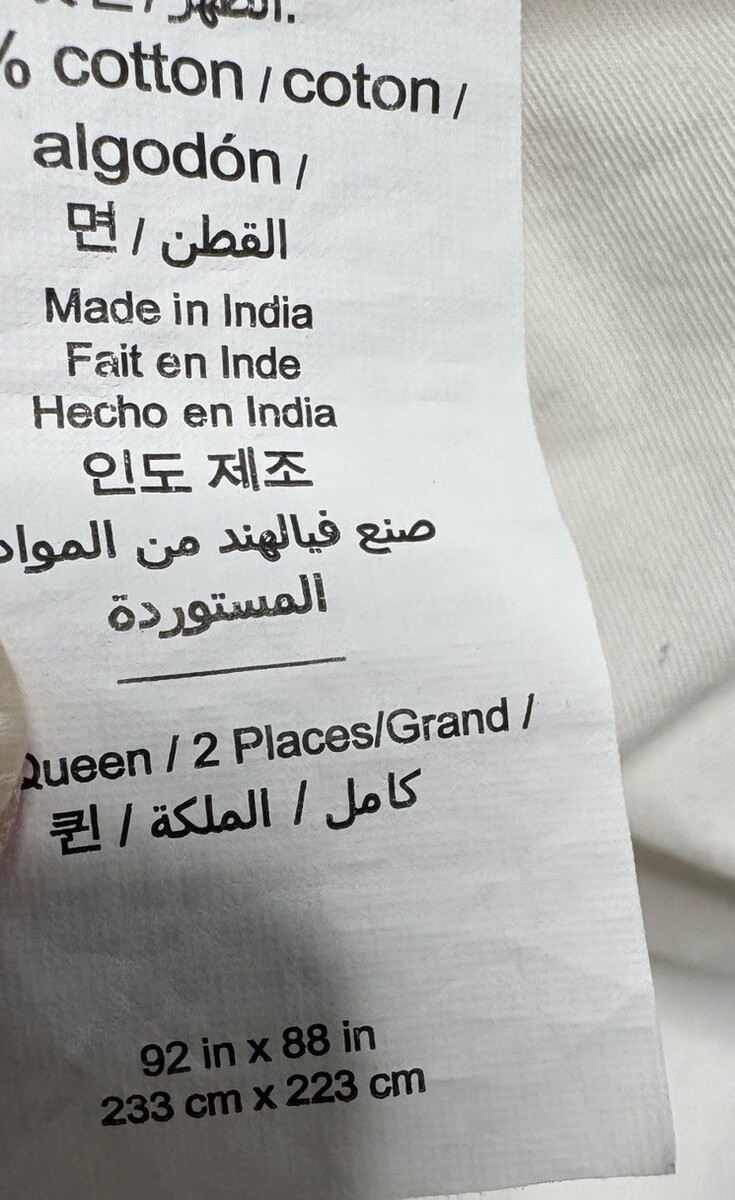 Pottery Barn Windowpane Linen Cotton Duvet QUEEN FULL Charcoal / Snow White
