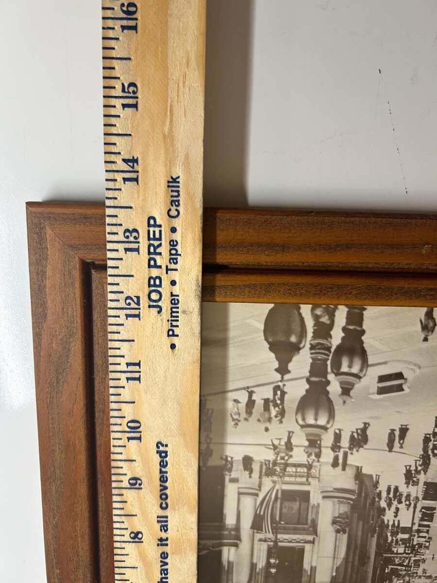 This vintage black-and-white photograph captures the bustling historic intersection of Grant Ave Market St in San Francisco. Encased in a classic wood frame, it reflects the architectural and cultural charm of the era. Slight yellowing enhances its antique appeal, making it a nostalgic centerpiece.