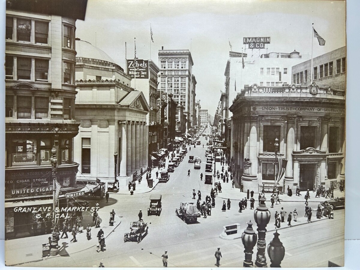 Framed Print Of Grant Ave & Market St San Francisco Early 1900s Cityscape VTG.