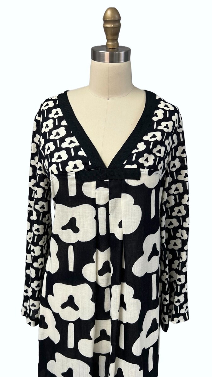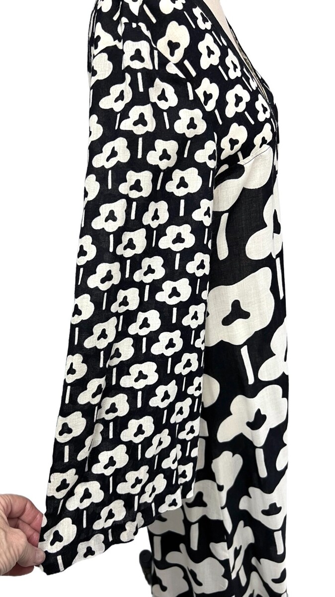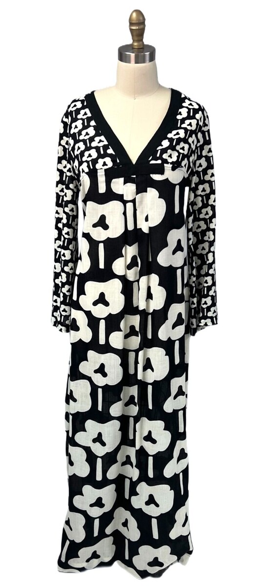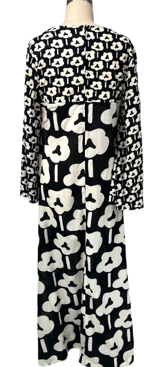 VTG 70s Elisabeth Stewart Maxi Dress Mod Op Art Floral Empire Waist S 38 Bust