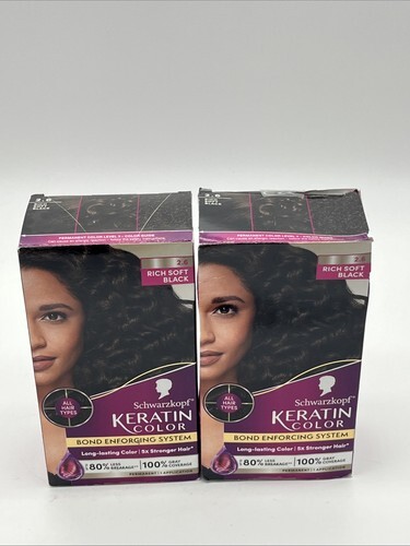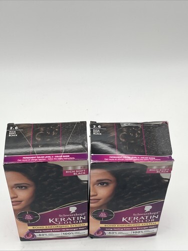 2 Packs Schwarzkopf Keratin Color Permanent Hair Color 2.6 Rich Soft Black New