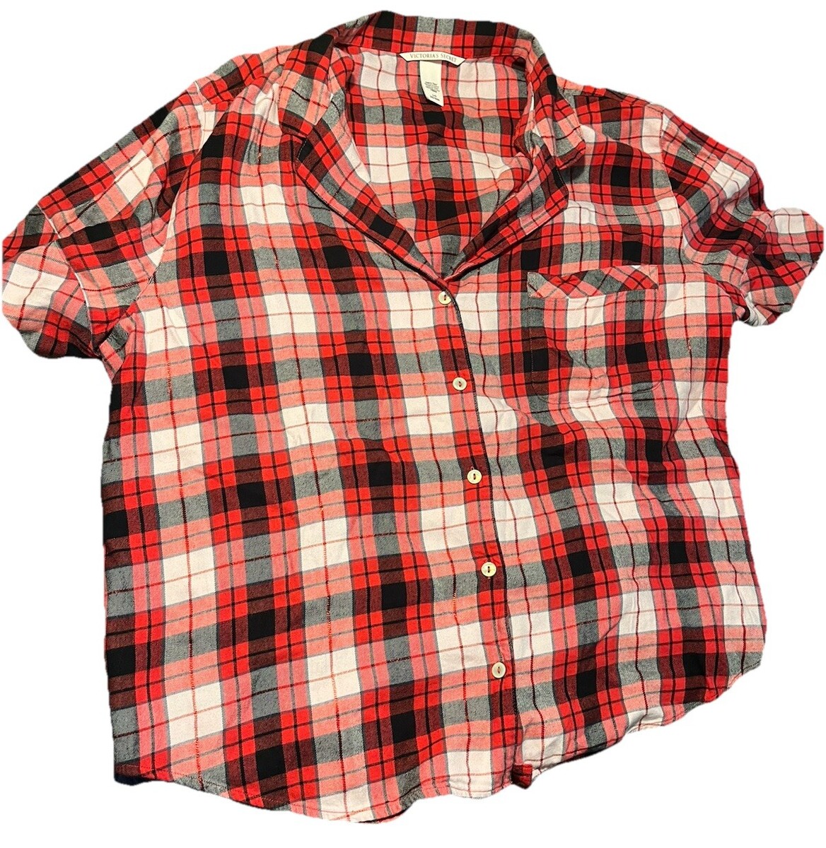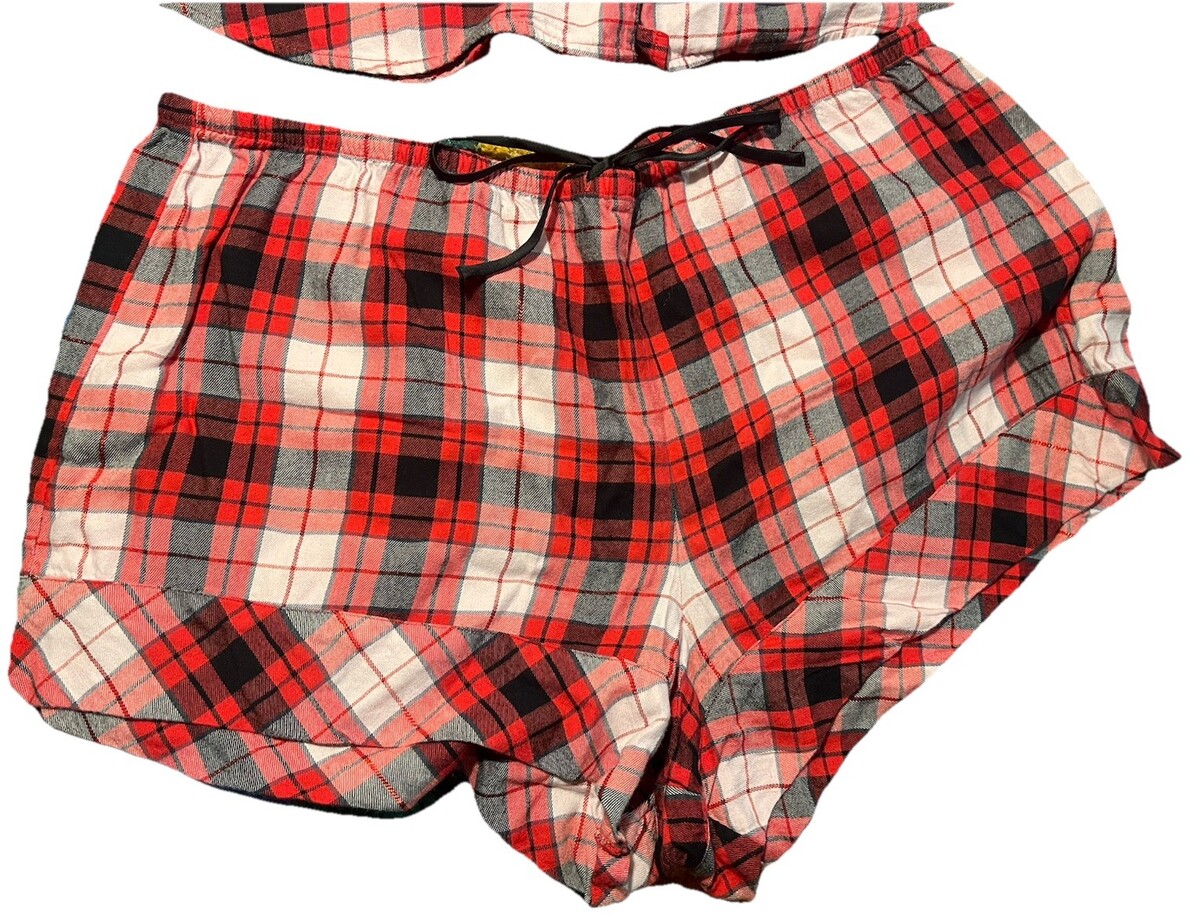 Victorias Secret Pajama Set Plaid Short Sleeve Top & Shorts Sleepwear SIZE L Red