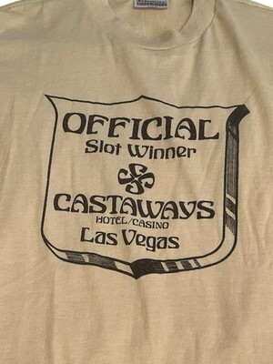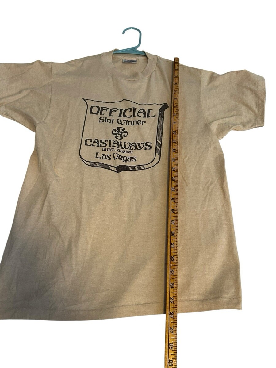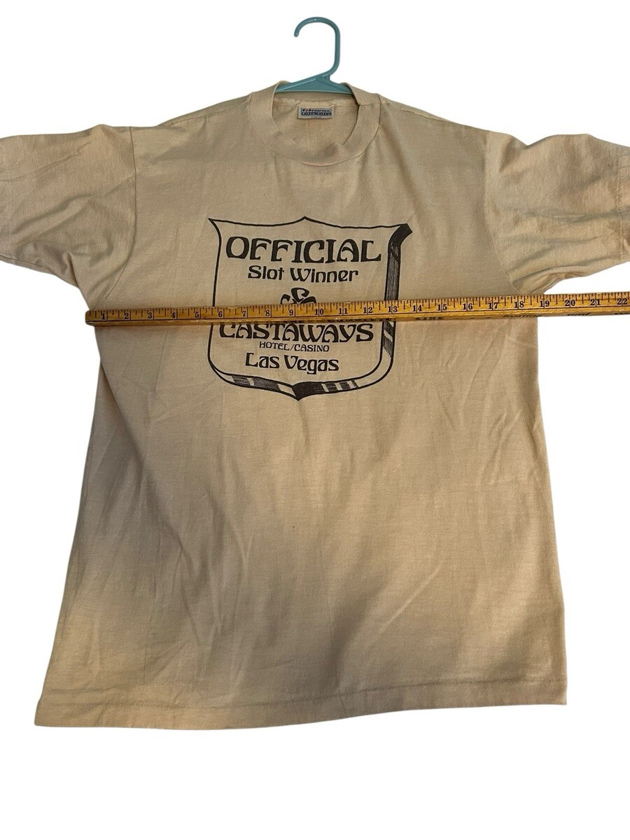 Vintage 80s Hanes 50/50 Tee Beige Las Vegas Castaways Casino Slot Winner Rare