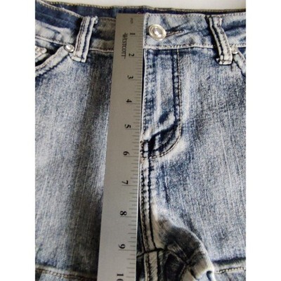 Rosy Loves Acid Wash Embellished Denim Shorts Size 11 Rhinestone Studded Y2K