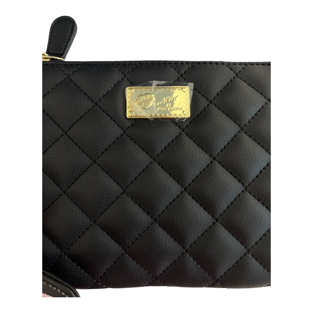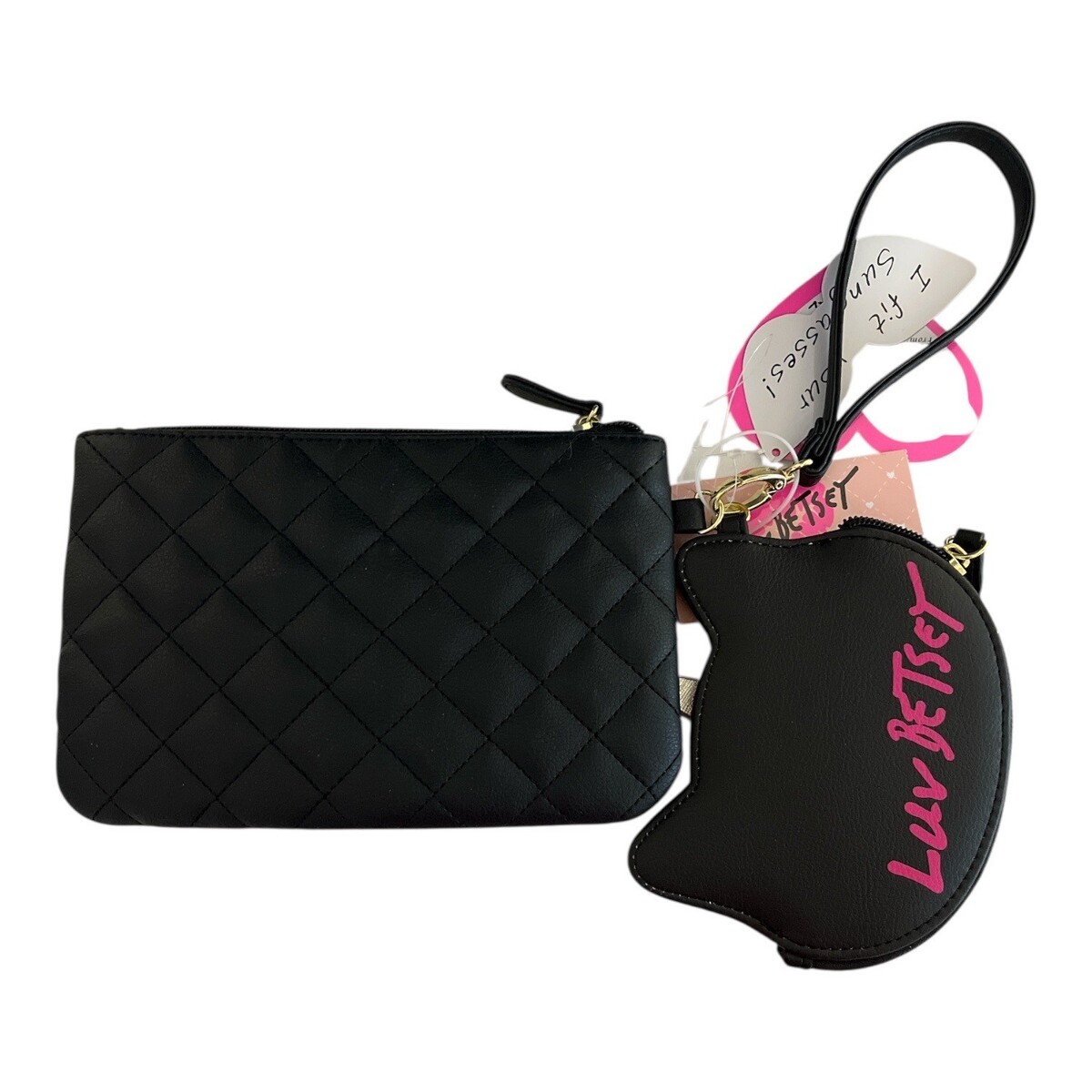 Betsey Johnson Luv Betsey Unicorn Coin Purse and Quilted Wristlet Set Black Pink Faux Leather