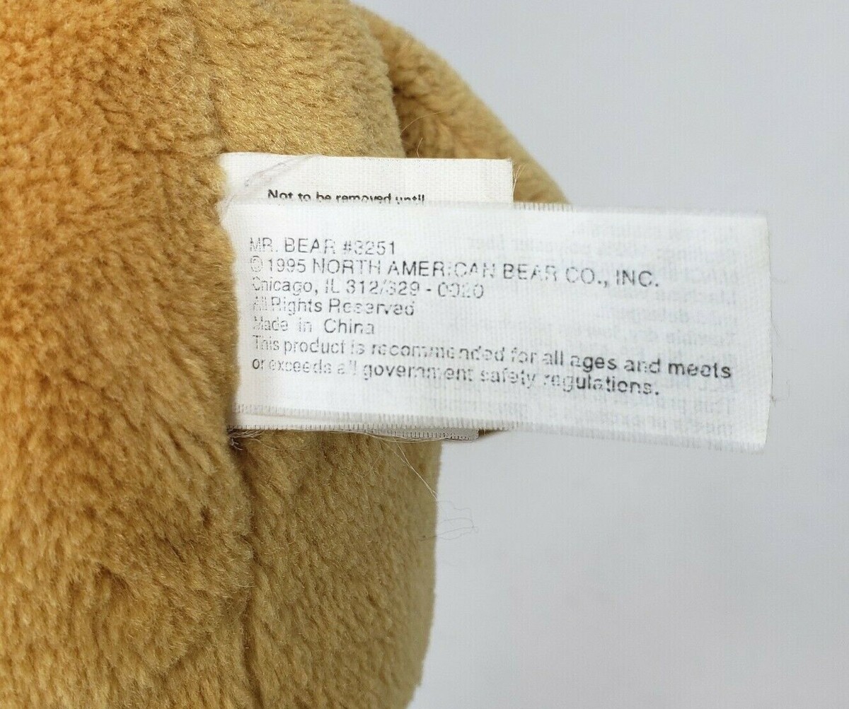 NORTH AMERICAN BEAR MR BEAR TEDDY STUFFED ANIMAL PLUSH TOY 3251 14" VINTAGE 1995
