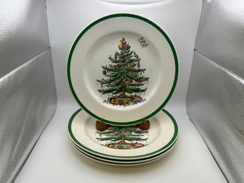 Set of 4 Spode CHRISTMAS TREE 10 1/2" Dinner Plates Made in England