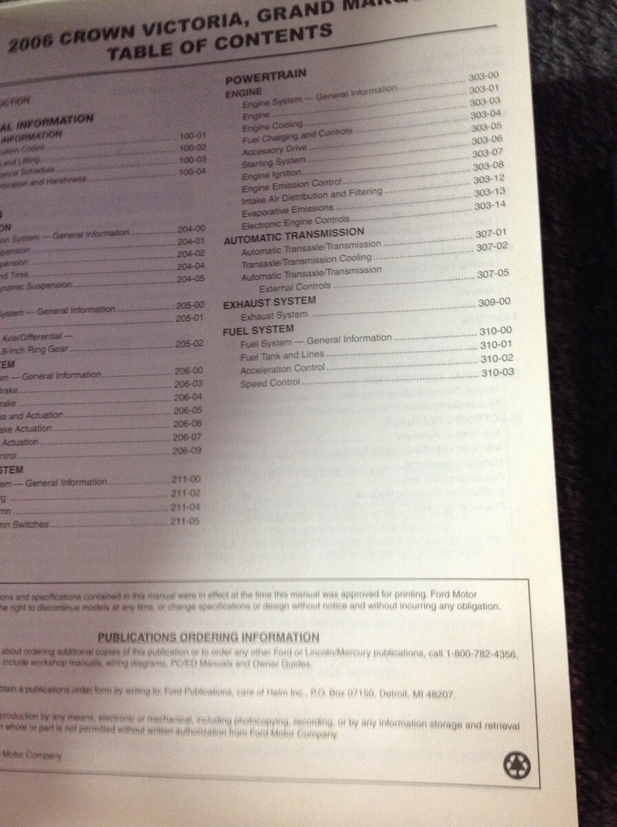 2006 Ford Corona Victoria Mercury Grand Marquis Servizio Shop Repair Manual Di