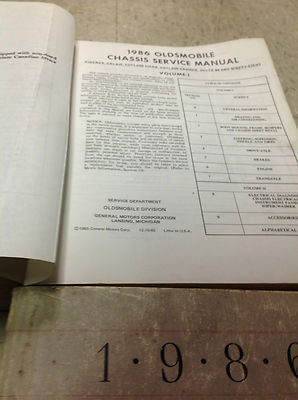 1986 Factory Oldsmobile FIRENZA-CALAIS-CUTLASS CIERA-DELTA 88-NINETY EIGHT Manuale di servizio 2 set di volumi, supplemento al manuale di servizio, manuale informativo sul nuovo prodotto e manuale del corpo Fisher
