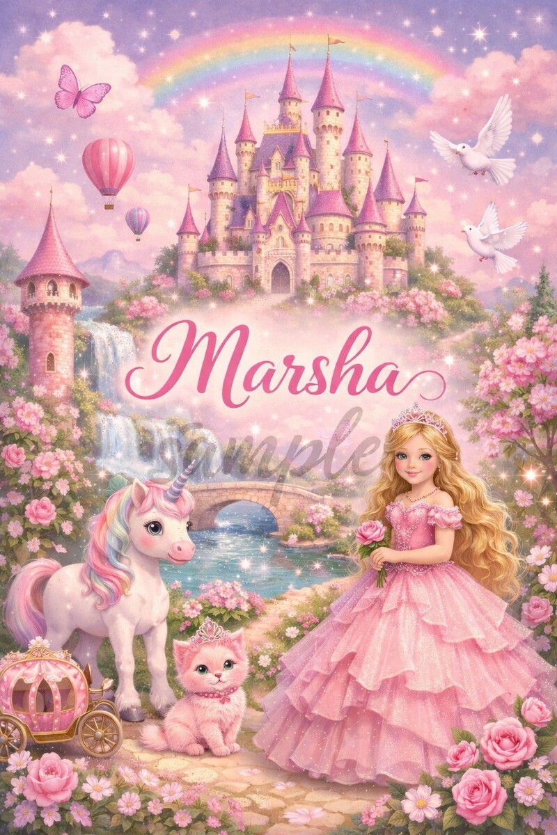 Princess Castle Art Print picture decor"8x10" Personalized With Name Of Choice