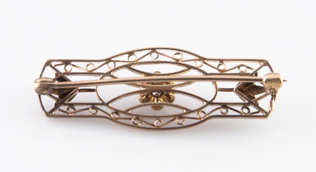 VINTAGE 10KT YELLOW GOLD DIAMOND IN AN ELABORATE LATTICE DESIGNED BROOCH PIN
