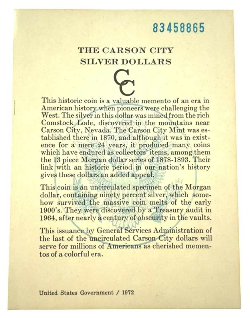 1884-CC Carson City GSA Uncirculated Morgan Silver Dollar w/ Box and COA