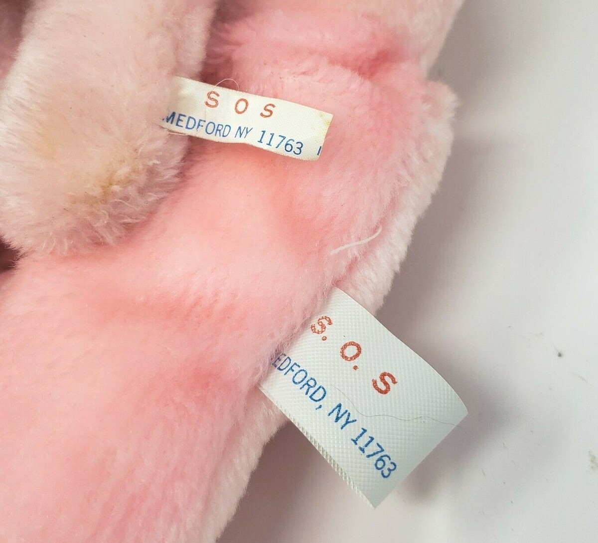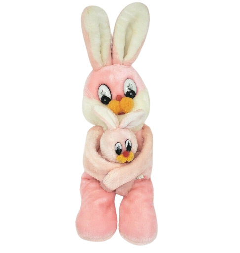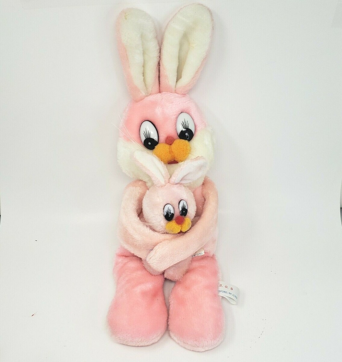 S O S PINK BUNNY RABBIT MOM HOLDING BABY VINTAGE STUFFED ANIMAL PLUSH TOY S.O.S
