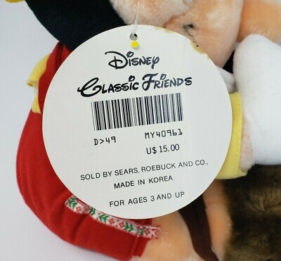 WALT DISNEY SEARS VINTAGE PINOCCHIO SITTING STUFFED ANIMAL PLUSH TOY DOLL W TAG