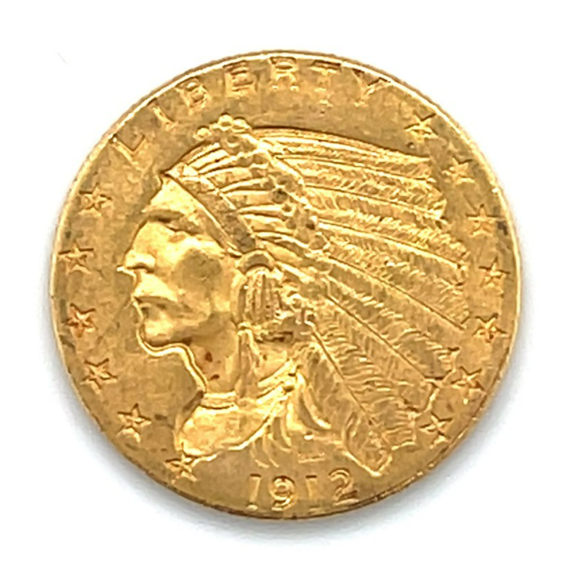 1912 Indian Head Quarter Eagle United States Gold Coin AU+ Condition