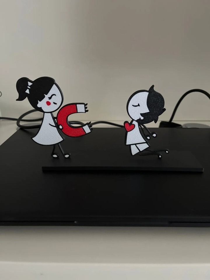 Capture the playful pull of attraction with this charming magnetic couple figurine. The unique design features a girl with a large magnet drawing her partner closer, a sweet symbol of love and connection. It serves as a delightful piece of decor for a desk, shelf, or mantelpiece. This sculpture makes a thoughtful and unique gift for Valentine's Day, an anniversary, or as a special present for your significant other.
