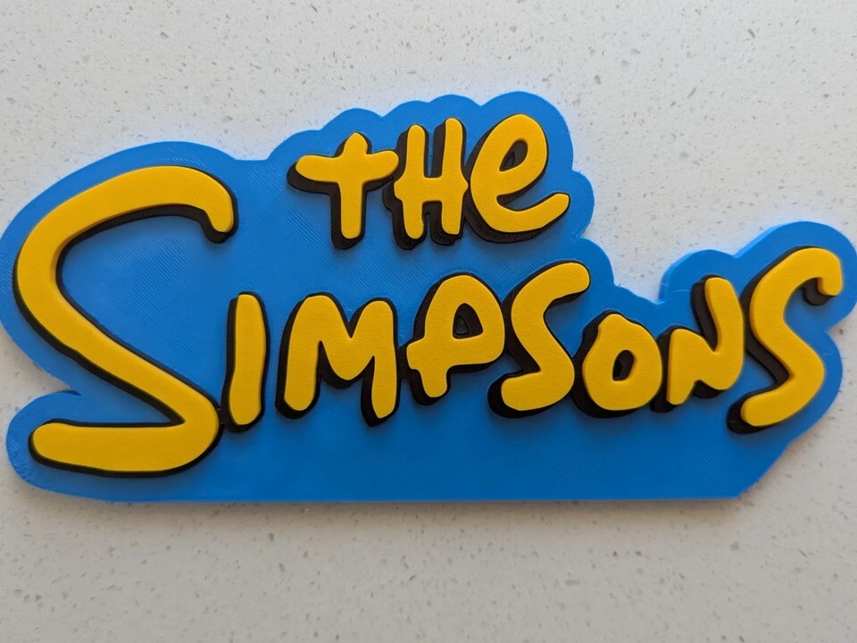 Show off your love for the iconic animated series with this vibrant The Simpsons logo sign. This piece is 3D printed, creating a dynamic, multi-layered effect with the classic yellow lettering on a bright blue background. Perfect for decorating a media room, office, or bedroom, it adds a fun pop of cartoon nostalgia to any space. This collectible sign is a great gift for any fan of the long-running TV show.