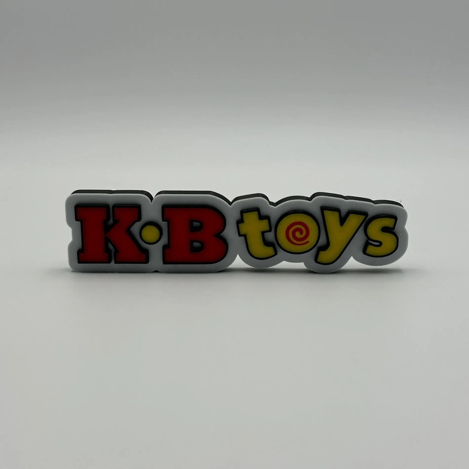 Relive nostalgic memories with this vibrant K-B Toys logo, a perfect collectible for enthusiasts of the classic toy store. This retro logo is a 3D printed sign, showcasing the iconic K-B Toys design in bright red and yellow lettering with a crisp black outline and grey backing. Measuring 8 inches, it's an ideal size for display on shelves, desks, or in a collector's showcase. Its solid construction ensures durability, making it a fantastic addition to any collection of retro memorabilia.
