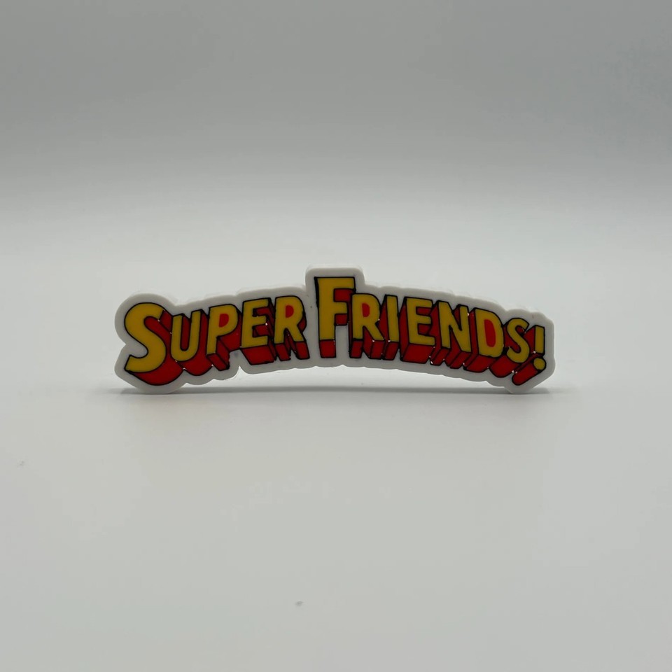 This 3D printed Super Friends DC Comics logo sign features the iconic yellow lettering with red outline and shading, set against a clean white background. Measuring 8 inches in length, this collectible piece offers a vibrant, three-dimensional representation of the beloved classic animated series. Perfect for display in a fan's collection, office, or entertainment area, it arrives in excellent, ready-to-display condition. This sign is ideal for enthusiasts looking to celebrate the legacy of DC's legendary superhero team with a unique and modern piece of decor.