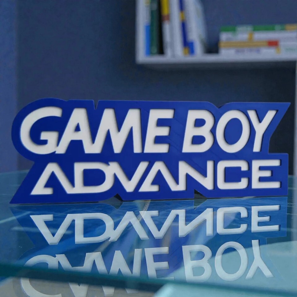 Showcase your love for classic handheld gaming with this vibrant Game Boy Advance logo sign. This display piece features the iconic GBA logo in a bold blue and white design, perfect for adding a nostalgic touch to any space. It stands freely on any flat surface, making it an ideal decoration for a shelf, desk, or entertainment center. A must-have collectible for any Nintendo fan or retro video game enthusiast, this sign is the perfect finishing touch for your game room.
