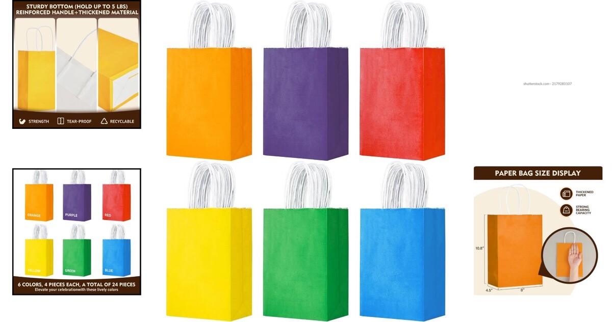 Craft Your Style: 24 Pack of DIY-Friendly Blank Gift Bags in Vibrant Colors