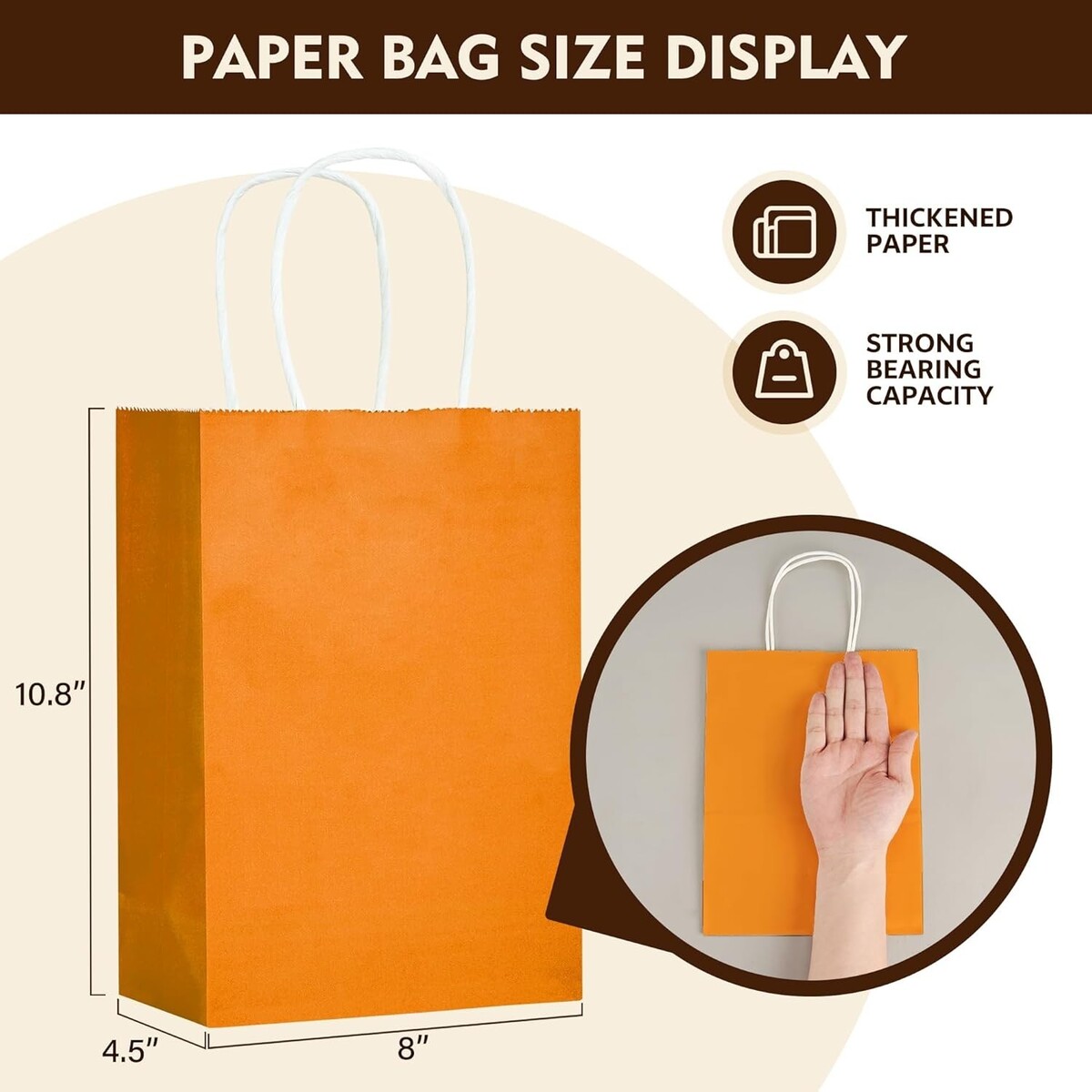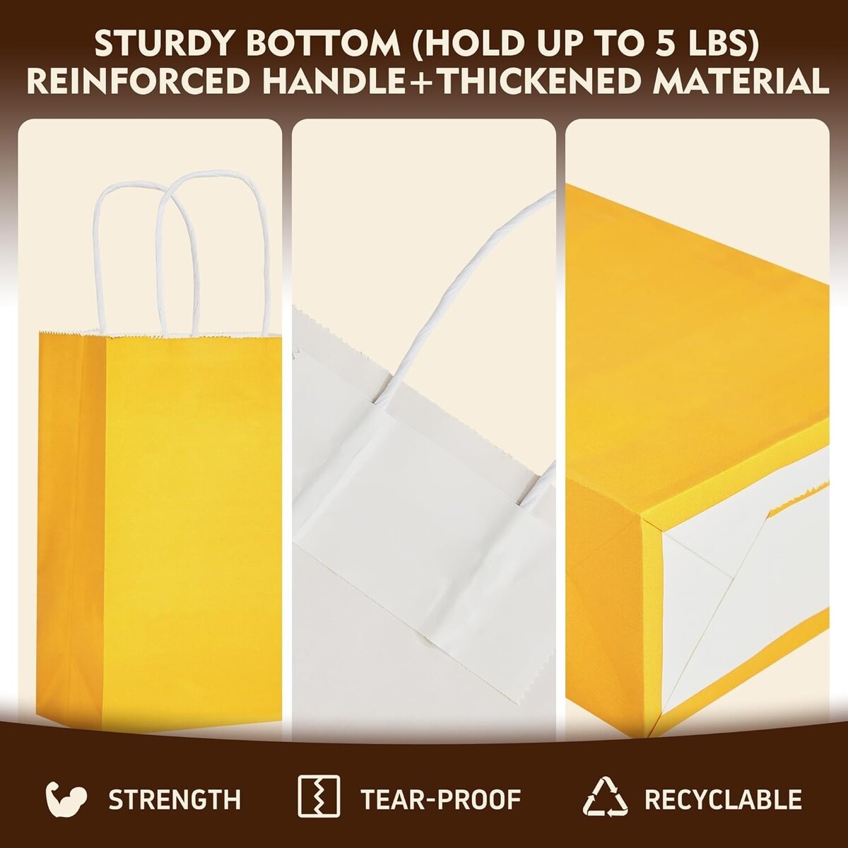 Durable Kraft Paper with Handles: Crafted from sturdy kraft paper, these bags feature reinforced bottoms and twisted handles for easy carrying, ensuring they stand up to daily use.