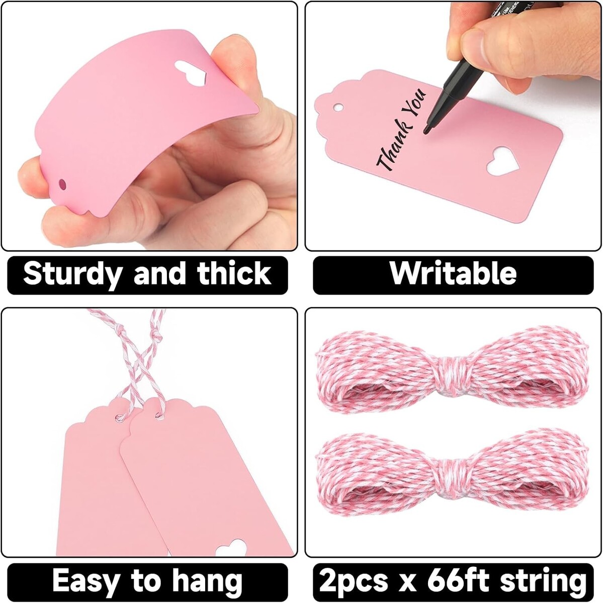 Elevate your gifting experience with our 100PCS Pink Kraft Paper Gift Tags. Created with quality cardstock, each tag provides versatility and aesthetic appeal. Whether you're dressing up a birthday gift, crafting unique party favors, or personalizing items for a wedding, these tags are your perfect companion.