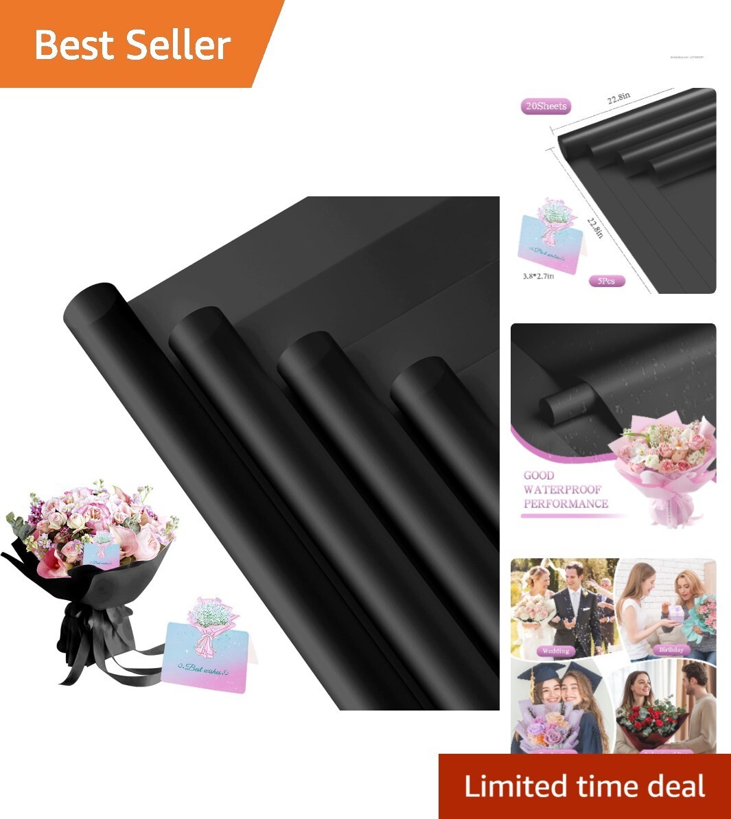 Unleash your creativity and wrap each bouquet or gift with a touch of elegance ? order your Durable Black Wrapping Paper today and make every gift unforgettable!