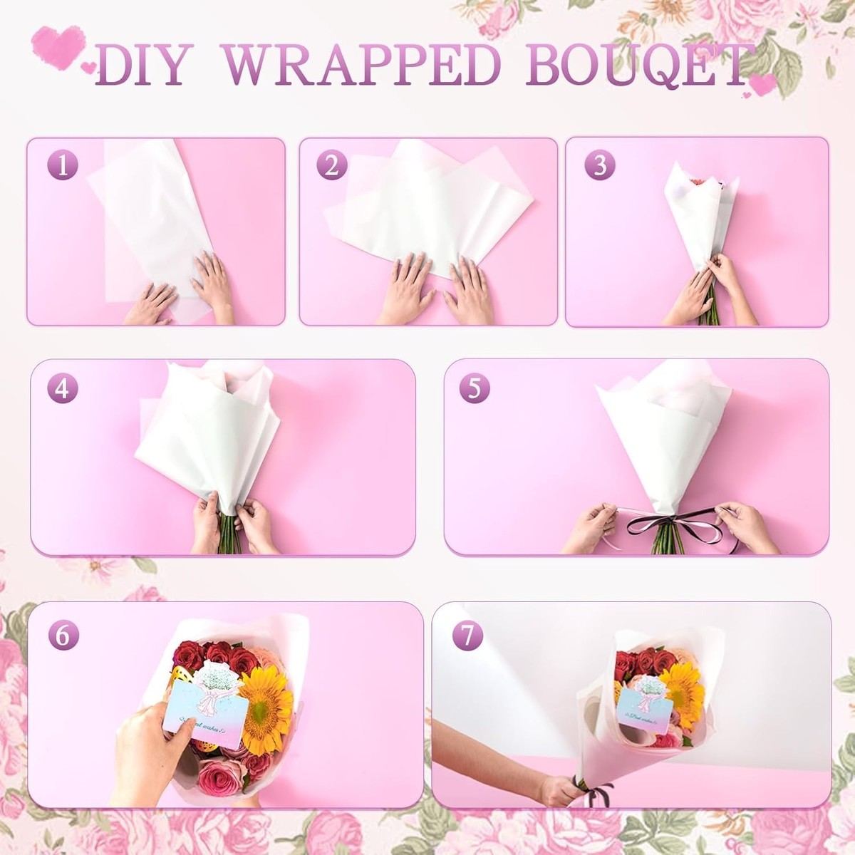 Black Floral Paper: Measuring 22.8x22.8 inches, perfect size for wrapping a variety of flowers, including bouquets and floral arrangements.