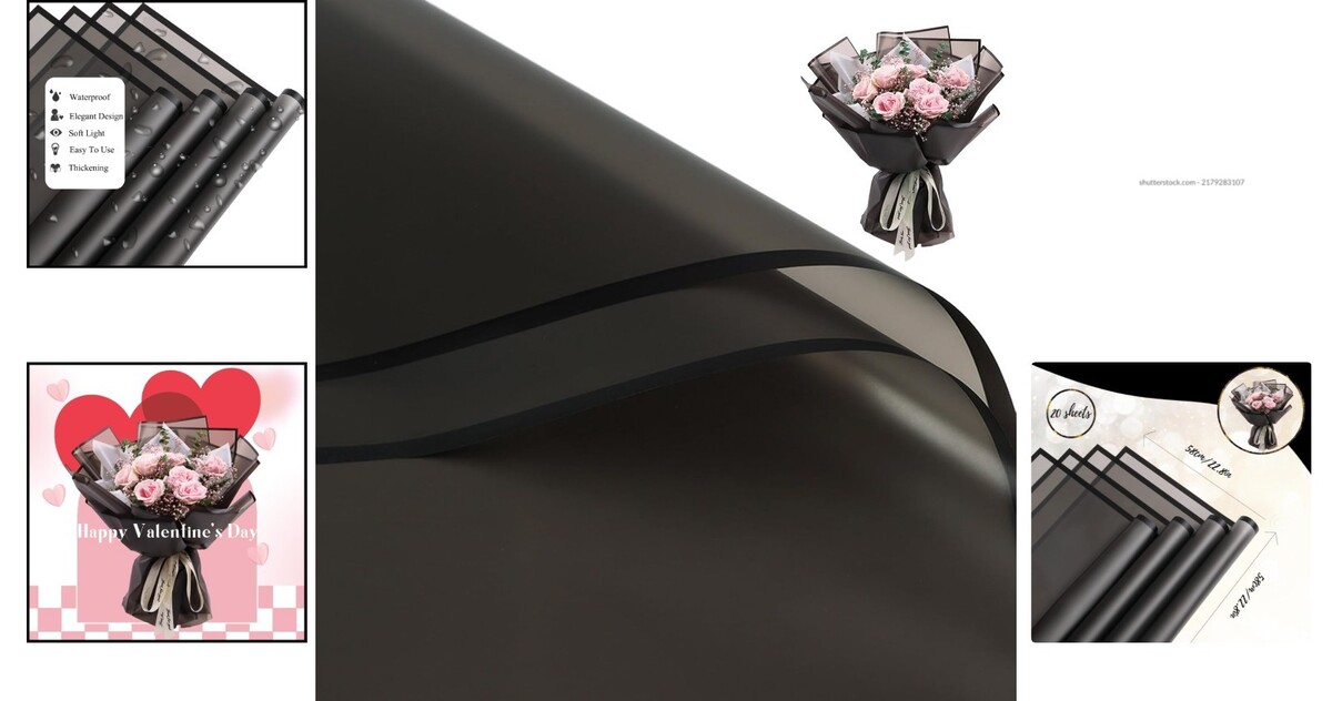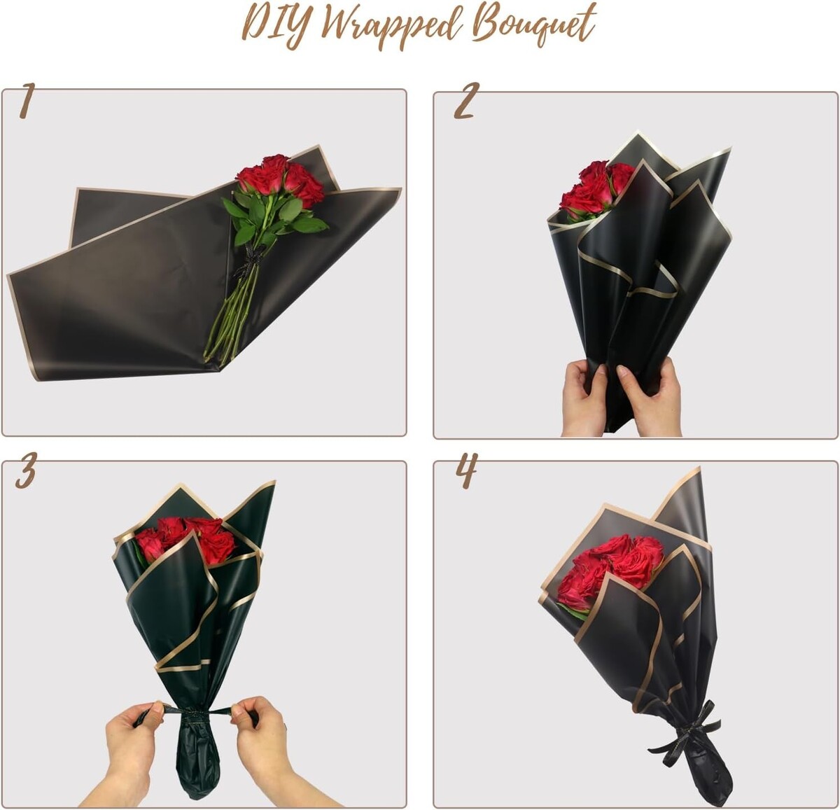 22.8x22.8 Inches Waterproof Black Floral Wrapping Paper - DIY Craft Essentials