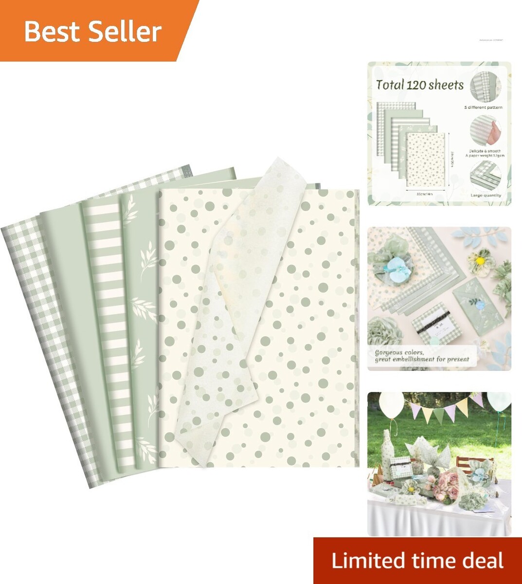 120 sheets of beautifully designed gift tissue paper, offering a total of 5 exquisite patterns.