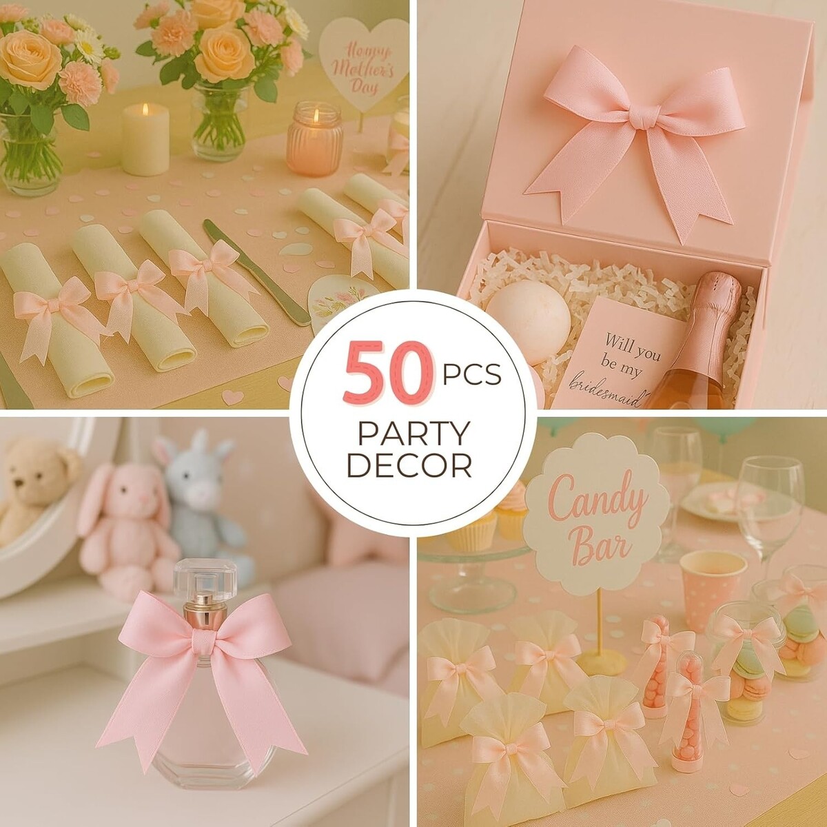 Versatile 50pcs Pink Gift Bows - Ideal for Baby Showers, Weddings, and Holidays