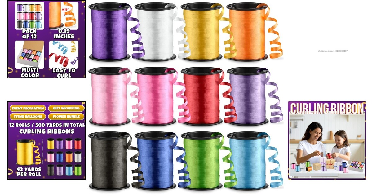 Vibrant 12-Roll Curling Ribbon Collection