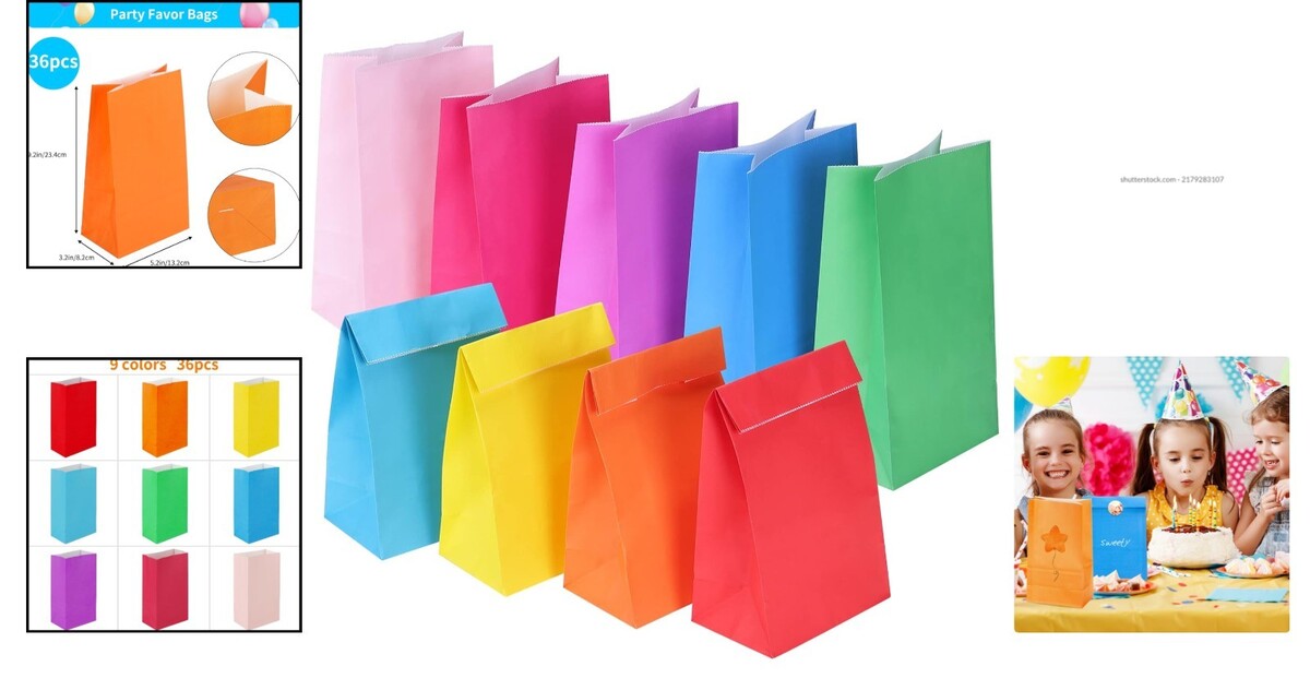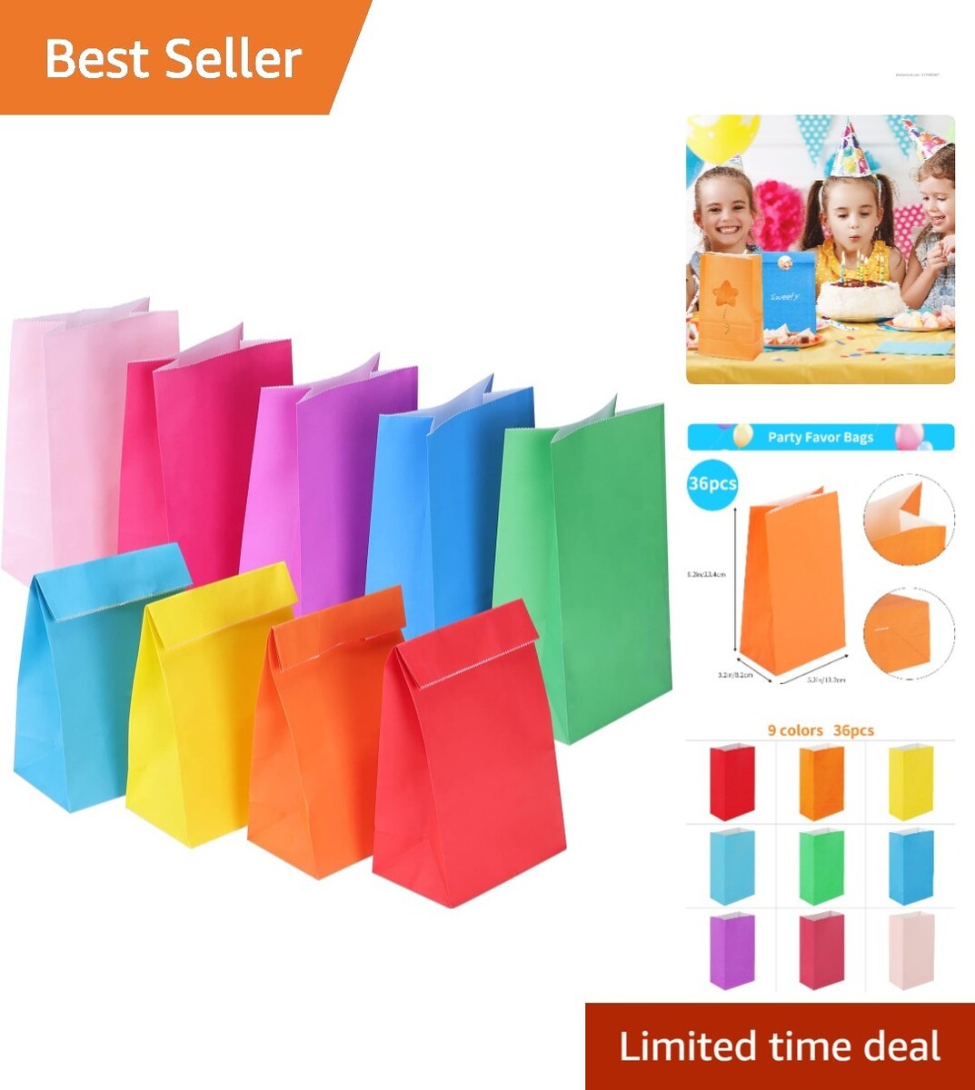 Durable 36pcs Gift Paper Bags - Perfect for Snacks and Crafts, 9 Assorted Colors