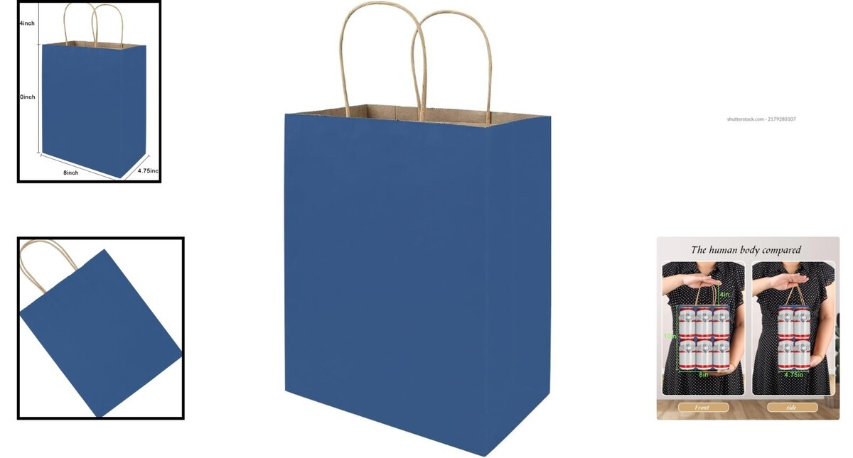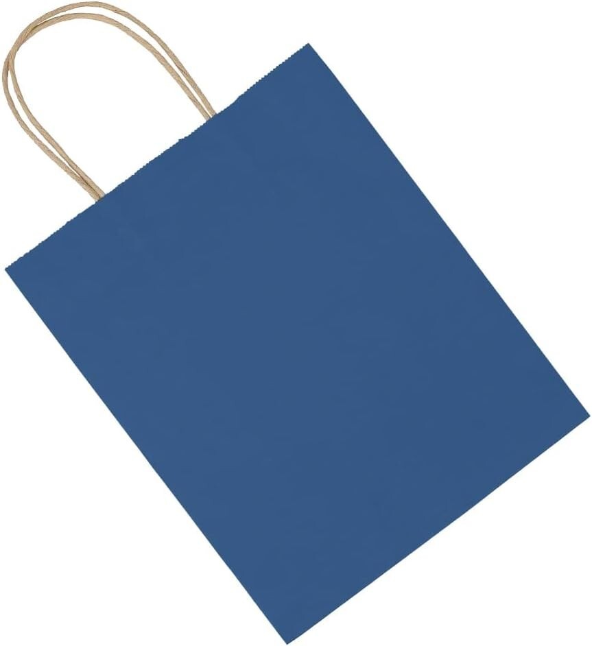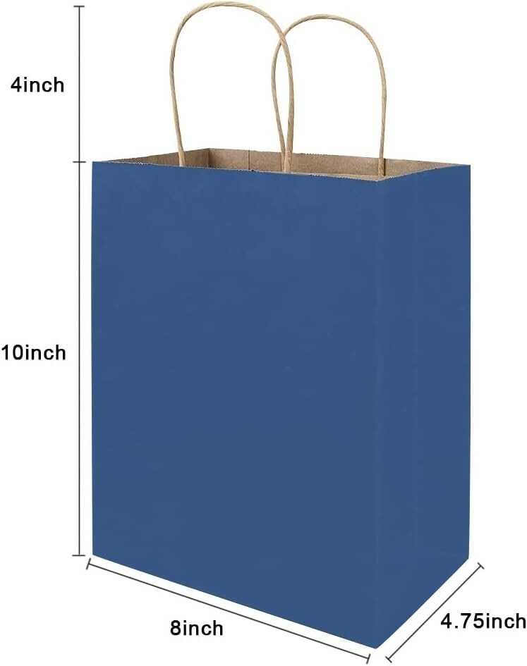 50 Pack Eco-Friendly Medium Blue Kraft Paper Bags with Handles ? 8x4.75x10 Inch