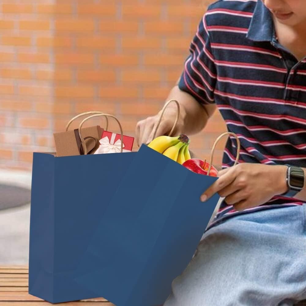 50 Pack Eco-Friendly Medium Blue Kraft Paper Bags with Handles