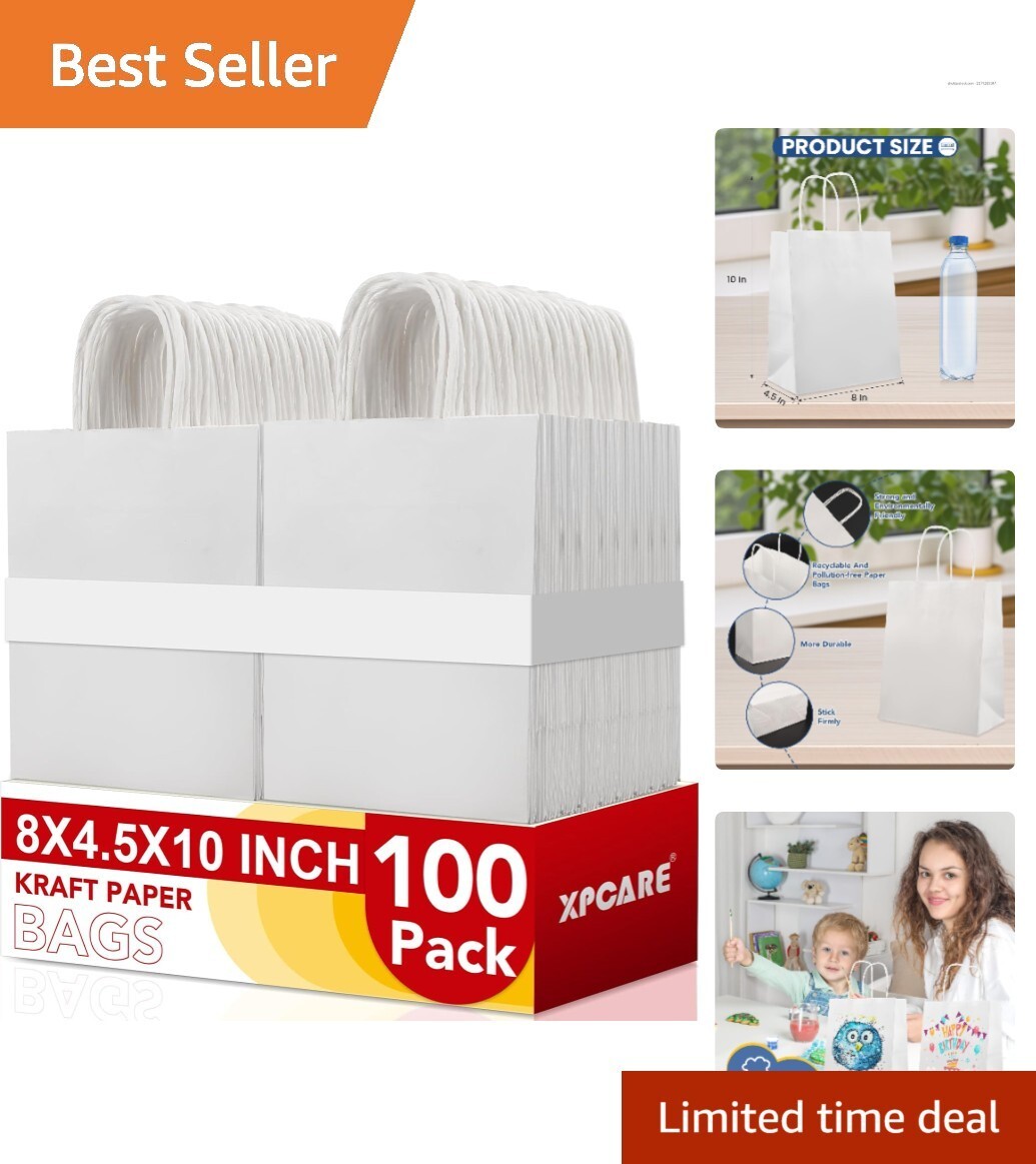 Durable 100-Pack 8x4.5x10 Kraft Paper Gift Bags ? Perfect for Parties Retail