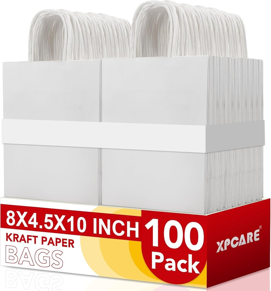 Durable 100-Pack 8x4.5x10 Kraft Paper Gift Bags – Perfect for Parties & Retail