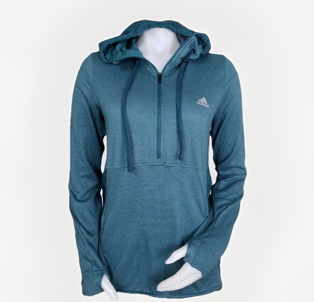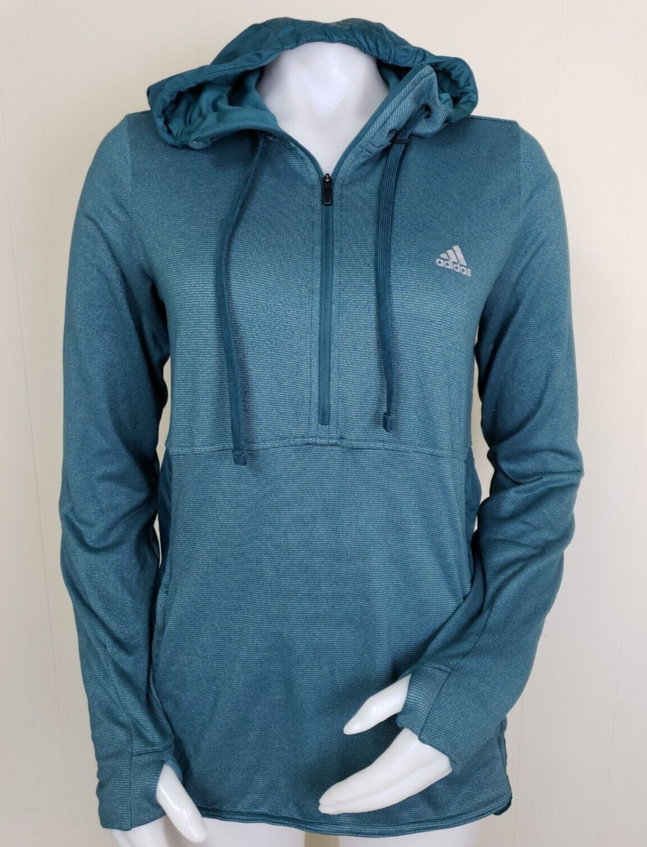 Adidas Thumbhole 1/2 Zip Jacket Womens M Teal Hooded Trans Climawarm Pullover
