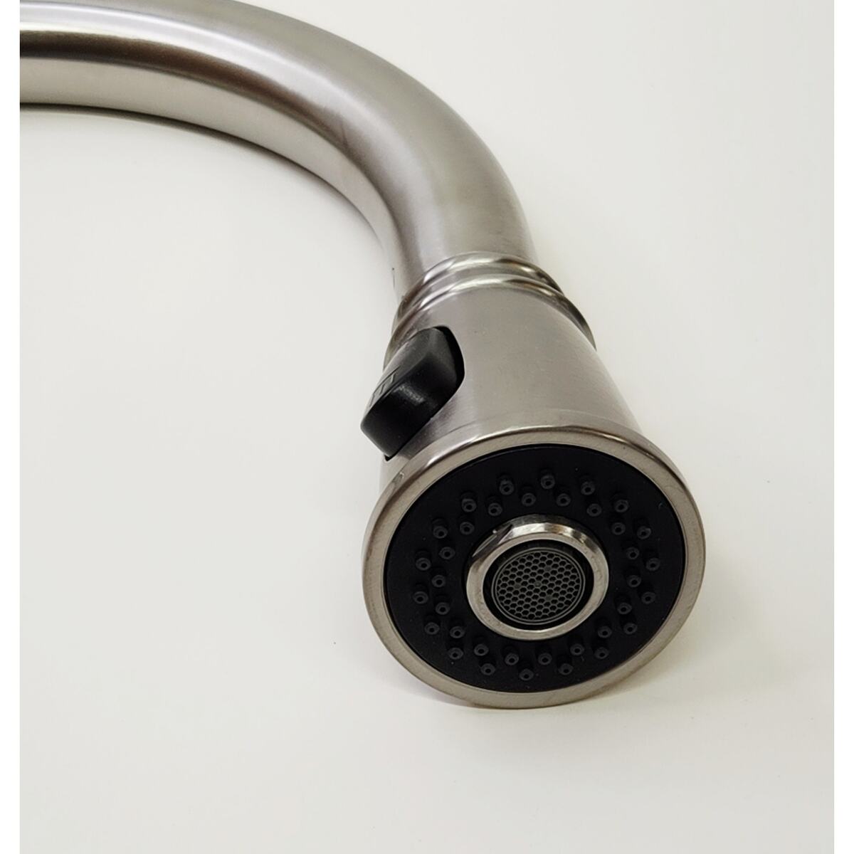 Faucet body constructed of zinc, spout made of stainless steel, and pull spray made of ABS
