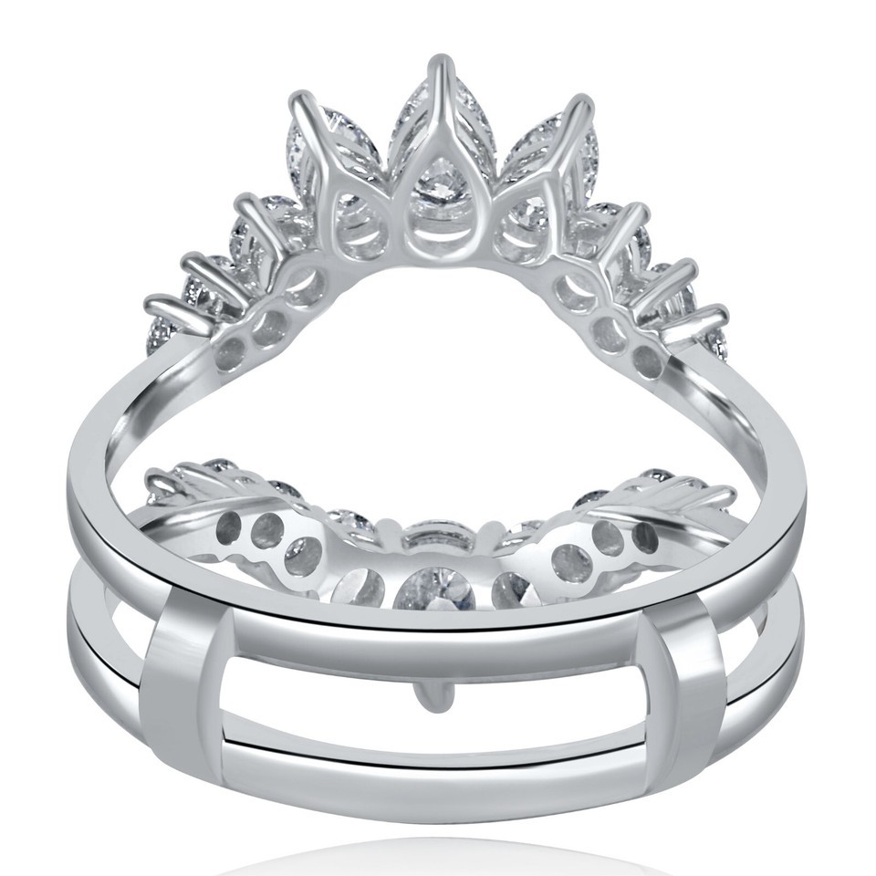 Enhance the glorious sparkle of your engagement ring with this beautiful 1.20 carat pear shaped and round cut lab grown diamond tiara guard ring in 14k white gold.