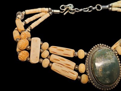 A striking statement necklace with excellent presence and craftsmanship?ideal for collectors of vintage turquoise jewelry or bold, artisan designs.