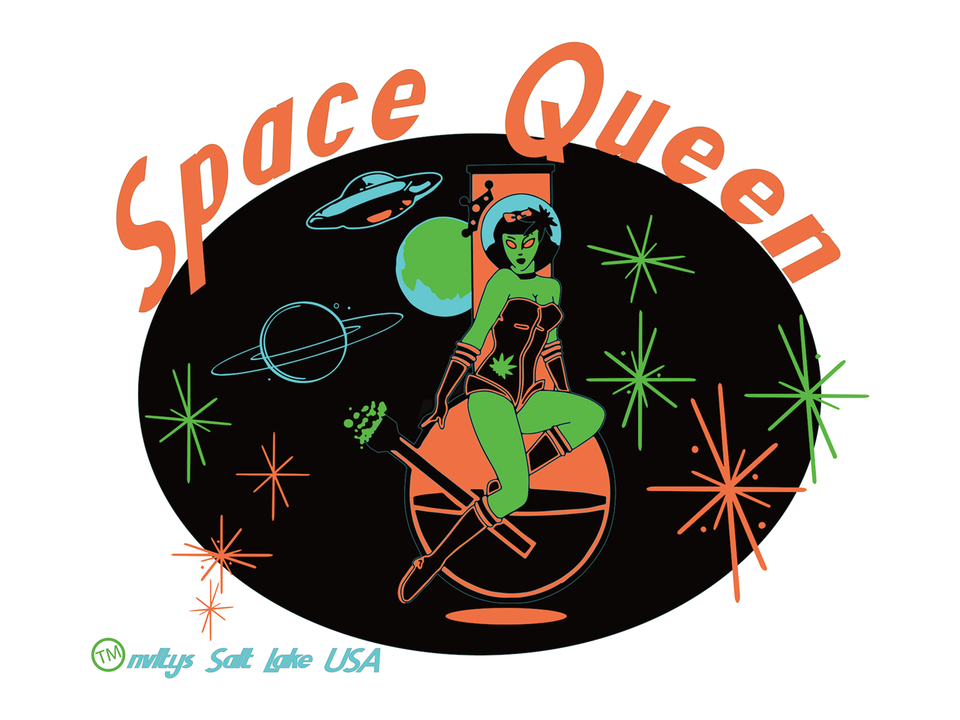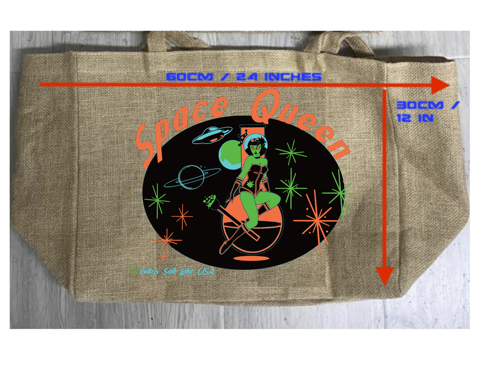 SPACE QUEEN BURLAP TOTE BAG marijuana pot leaf pin up #943 alien woman